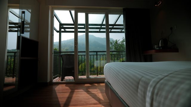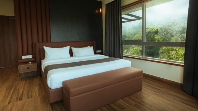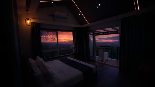 The suite features a spacious bedroom with elegant interiors, refined furnishings, and large windows that open up to breathtaking mountain views. Wake up to mist-covered hills and unwind in the evenings as the landscape transforms with golden sunsets and cool mountain air.