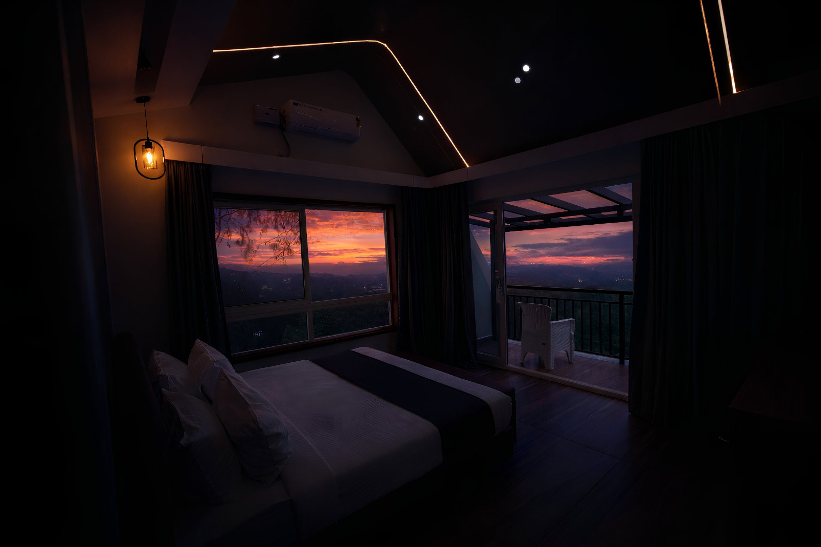 The suite features a spacious bedroom with elegant interiors, refined furnishings, and large windows that open up to breathtaking mountain views. Wake up to mist-covered hills and unwind in the evenings as the landscape transforms with golden sunsets and cool mountain air.
