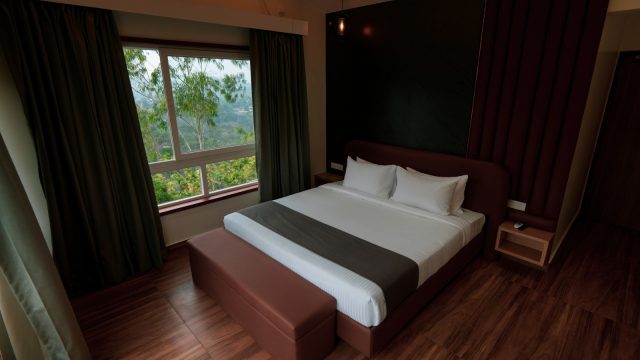 The room features elegant interiors, plush bedding, and a generous living space, complemented by large windows that frame panoramic valley views. Step onto the private balcony to enjoy cool breezes, quiet mornings, and calming sunsets that create a truly relaxing atmosphere.